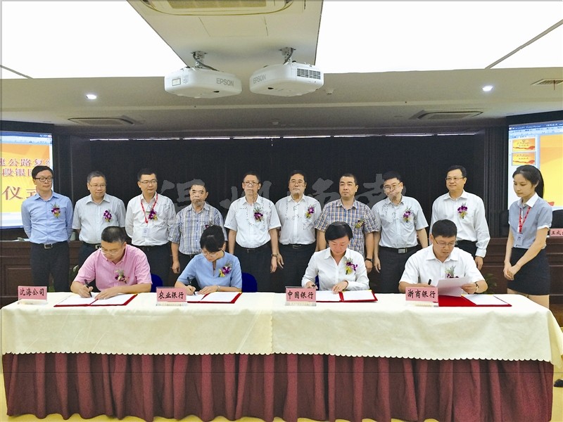 晚报讯 昨天下午,市交投集团与农业银行、中国银行及浙商银行签署协议,三家银行对甬台温高速公路复线灵昆至阁巷段授信90亿元贷款,成为我市已正式落地的银团贷款中金额最大的一笔项目。