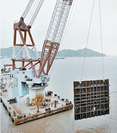 昨天清晨6时为高平潮时段,在确认各项技术指标均已达标后,瓯江北口大桥中塔首节钢沉井启动注水着床工作,着床方法确定由60名施工人员利用36台水泵,抽取18000立方米江水一次性注入钢沉井隔舱,使钢沉井着床至预防护层上。