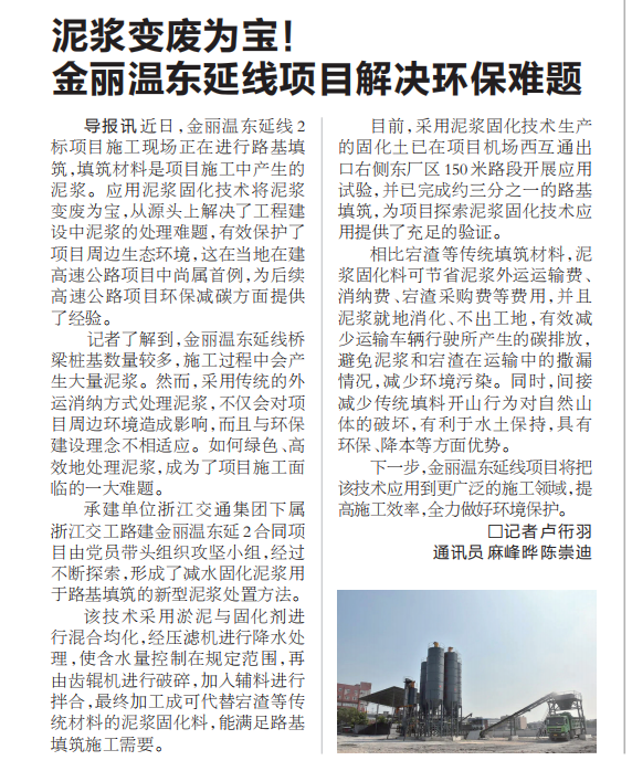 泥浆变废为宝!金丽温东延线项目解决环保难题