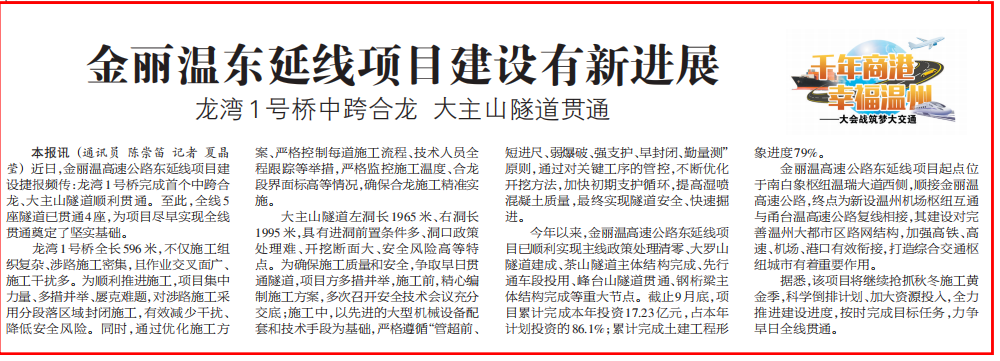 金丽温东延线项目建设有新进展