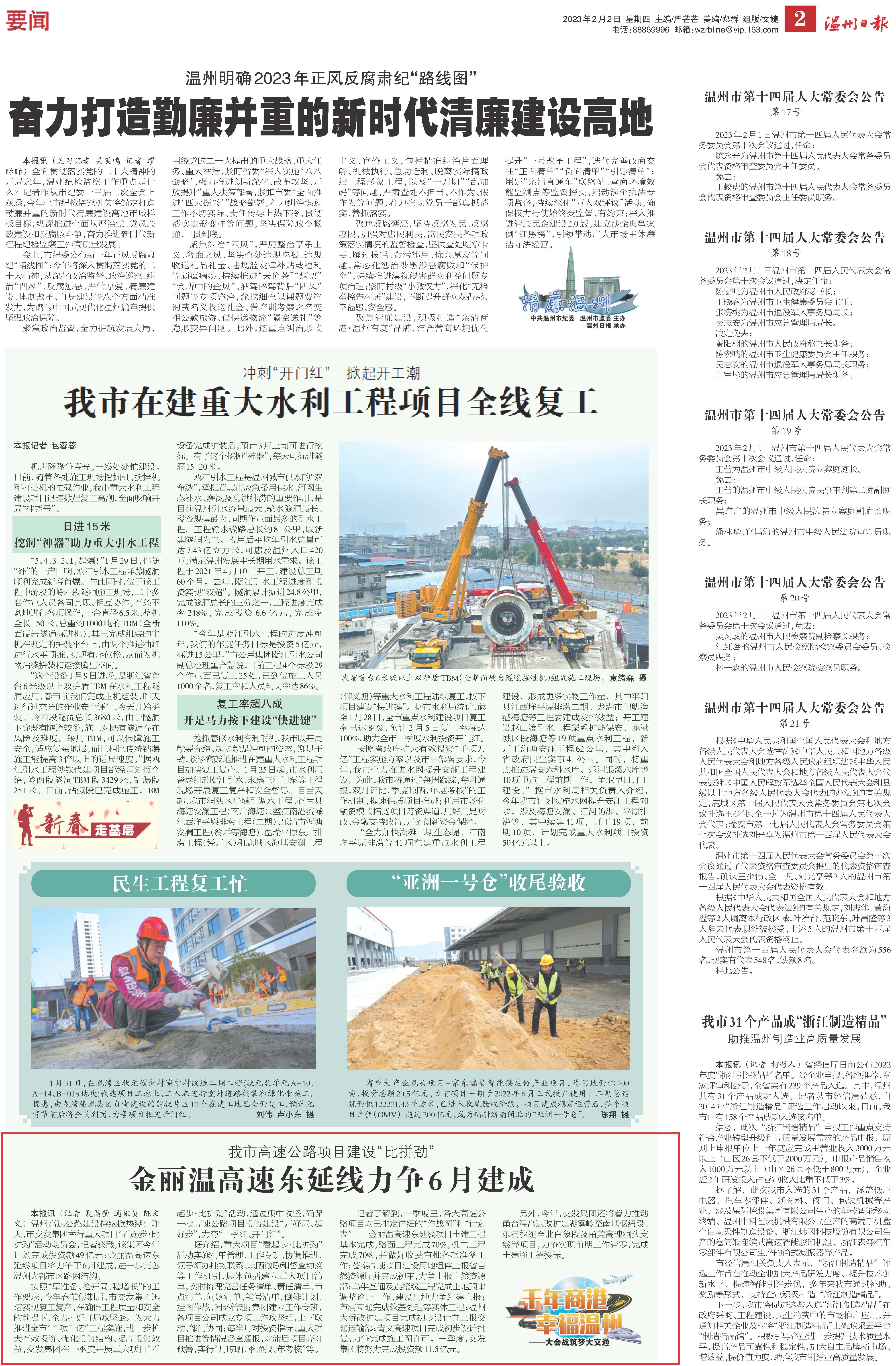 我市高速公路项目建设“比拼劲”——金丽温高速东延线力争6月建成