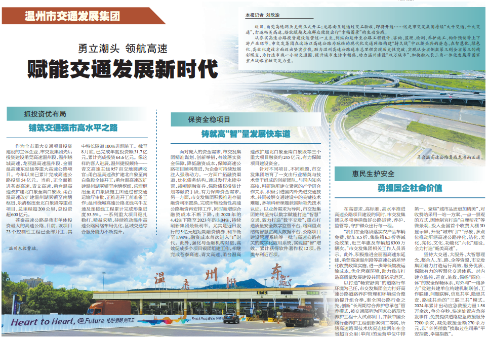温州市交通发展集团:勇立潮头 领航高速 赋能交通发展新时代