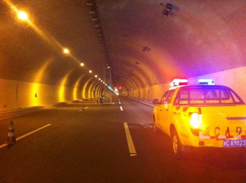 温州绕城高速隧道灯具光源(高压钠灯)已运行5年,随着灯具表面灰尘的积累和光源的自然光衰,其光源色温明显偏黄,亮度也有所下降。为保证隧道行车亮度,工程公司于近日开展隧道灯具清洗维养工作。