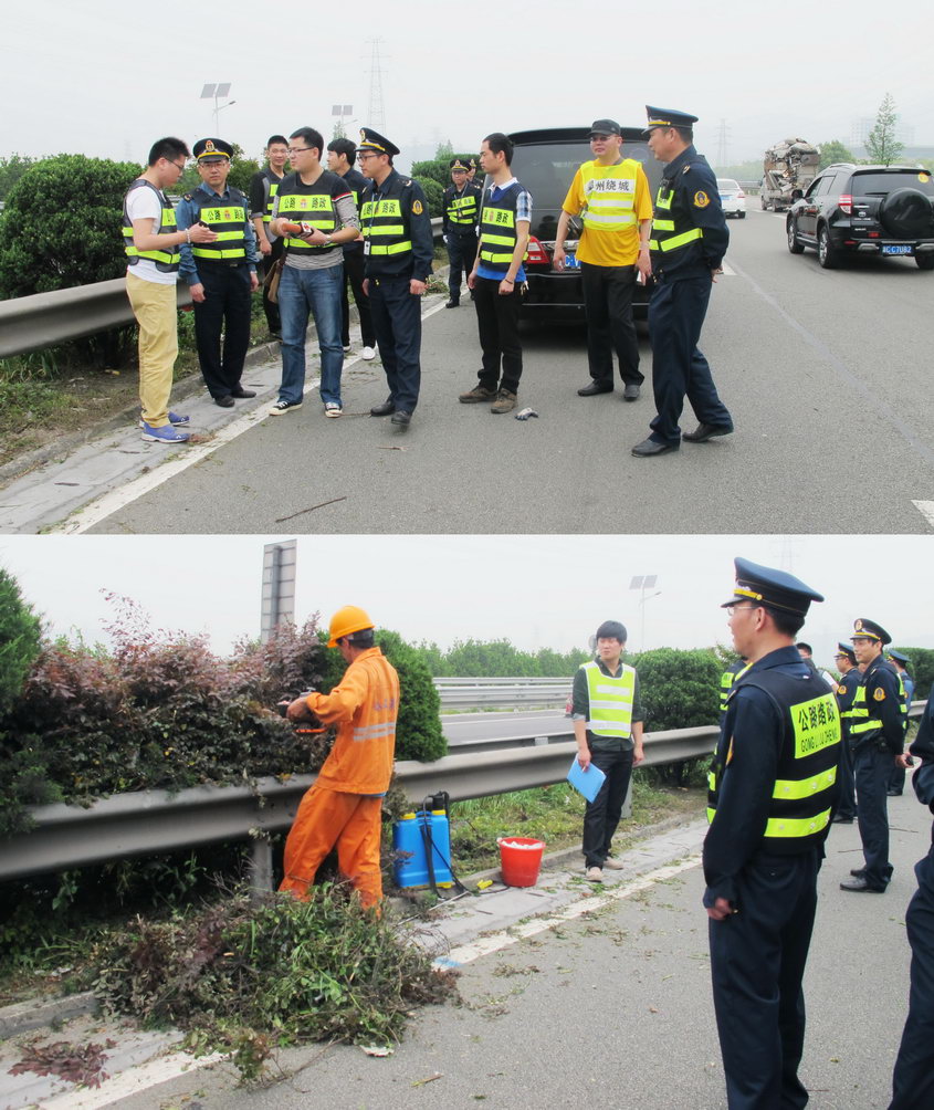 上午九点,路政管理人员和市民代表到现场观摩,查看我司封道情况及绿化修剪清理过程。期间市民代表针对我司的绿化施工提出相关问题,工程部杜卫东经理一一做出解答,并向市民代表介绍公司绿化工作相关情况,强调高速施工必须把安全放到首位。