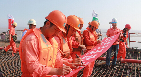 活动当天,来自监理公司大门大桥一期工程第二监理办、第三监理办、大门镇至小门大桥公路工程监理办和中交公司的百余名干部职工来到预制箱梁现场,在印有“我要安全,共筑中国梦”的15米红色横幅上,进行了签名,以此时刻警醒,为了自身安全和企业的长远发展,要紧绷安全弦,用饱满的精神状态更好服务企业、服务社会。