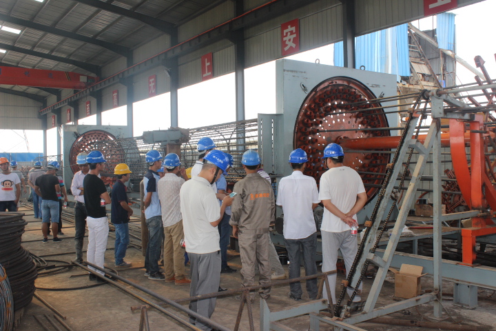 为进一步提高桩基钢筋笼的加工技术水平,增强使用数控设备的理念和意识,近日,滚焊机加工钢筋笼观摩会在绕西南项目第7标段钢筋加工场举行。5、6、8标段的技术负责人、质检负责人、桩基管理人员和钢筋笼加工班组负责人参加。