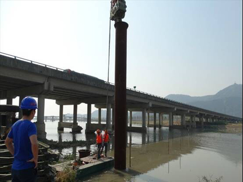 甬台温复线温州南塘至黄华段 二标第一根便桥钢管桩顺利打设
