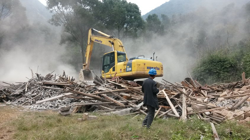 11月11日下午3时,随着瓯海区潘桥街道办公室主任一声令下,五间二层楼房被夷为平地,标志着瓯海区房屋拆迁的号角已经吹响,同时也打响了绕西南项目房屋征收第一炮。