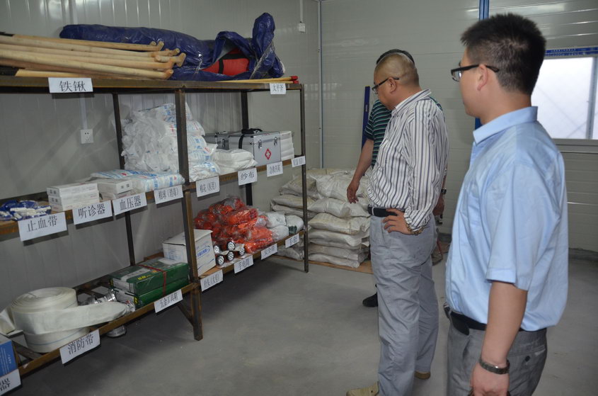在4标项目部应急物资储备库,检查组认真查看了各项应急物资储备情况,并对该项目安全生产应急管理工作提出三点要求:一是要进一步提高对安全生产应急管理工作的认识,安全生产应急管理是安全生产工作的最后一道防线。加强安全生产应急管理,是关系国家经济社会发展全局和人民群众生命财产安全的大事,是构建社会主义和谐社会的重要内容。通过加强安全生产应急管理,可以最大程度地预防和减少突发事件及其造成的损害,保障生命财产安全;二是要切实加强安全生产应急预案管理,开展好应急演练。要按照预案编制导则,结合本单位实际编制应急预案,并每年至少开展一次应急演练,以切实锻炼应急救援队伍;三是要提升安全生产应急管理水平。项目部要加强应急管理工作,组建应急救援队伍,配备好物资器材,加强全员安全生产应急知识和技能培训。