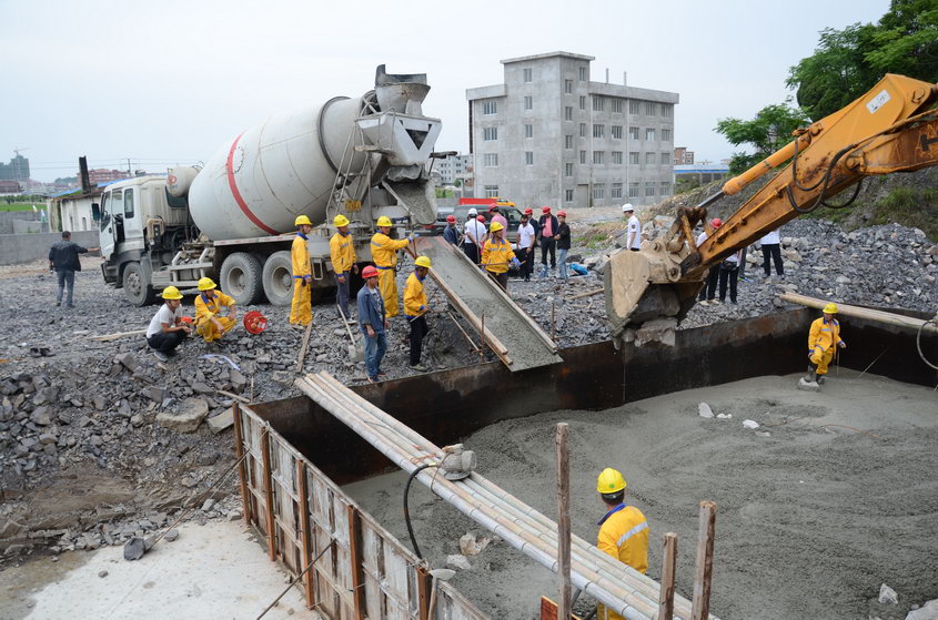 南山隧道出口高挡墙路基,根据设计要求,需先进行宽6m,高6.6m的片石混凝土护脚基础施工,再进行高度近30m的码砌边坡路基施工,其边坡护脚基础质量,对整个高挡墙路基基础稳定性具有控制性作用。为此项目部多次组织技术管理人员进行技术论证,对施工质量安全进行层层交底,明确混凝土浇筑时的质量、安全控制要点。监理单位对基础混凝土质量从原材料抓起,严格把控砂、石、水泥等原材料质量,确保基础混凝土质量满足设计要求。项目部在施工前,提前做好谋划,从边坡开挖的片石中,优选出一批合格片石,作为片石混凝土填充料,保证片石混凝土施工质量。并调集足够的机械、人员进行项目建设施工,满足项目建设需要。