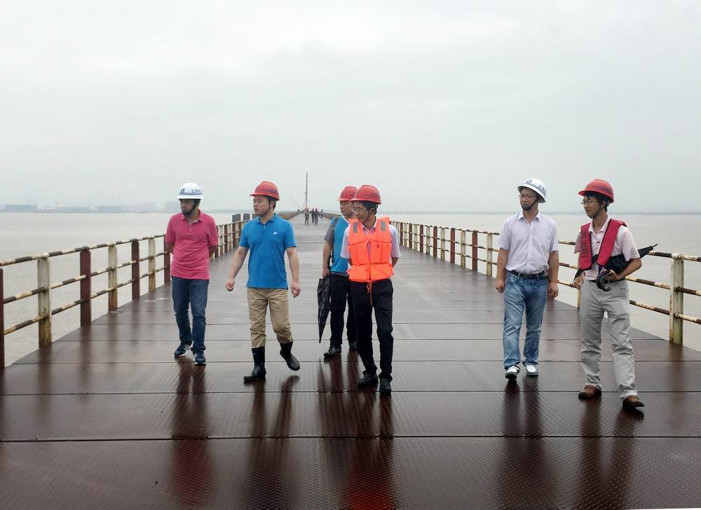 面对三个台风同时逼近的严峻现实,7月8日,沈海公司党支部书记、副总经理、温瑞处处长蔡邦国对工程全线进行实地检查。