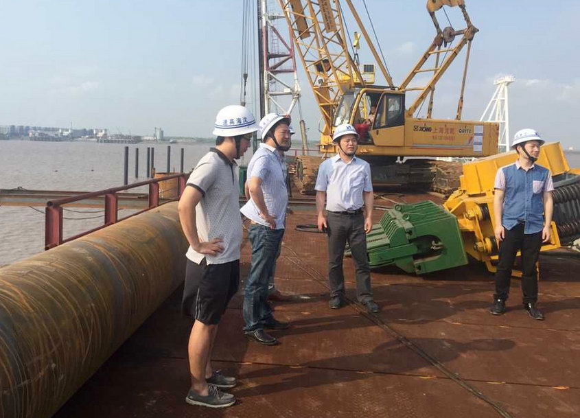 陈院长一行先后检查了飞云江跨海特大桥水上钢护筒打设、第9标段驻地、及第1、2标段驻地建设,仔细询问了解各施工单位工程施工进展,并对现阶段施工进度、施工现场文明建设等方面的工作予以肯定。