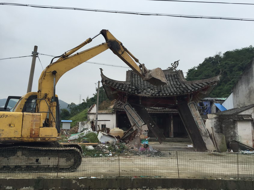 沈氏祠堂位于工程第9标段施工红线内,湖岭背山上下来第一排桩基位置,对工程的推进造成了阻碍。祠堂为特殊构筑物,占地约2亩,建筑面积1000多M2,由于陈岙村村内符合两规地块较少,附近有化工厂等原因,祠堂的迁改安置选址较为困难。经平阳高速指挥部、万全镇政府与沈氏祠堂代表近两年时间艰苦协商,终于达成搬迁拆除协议,沈氏祠堂代表同意给予一次性货币补偿后,自行选址建造。