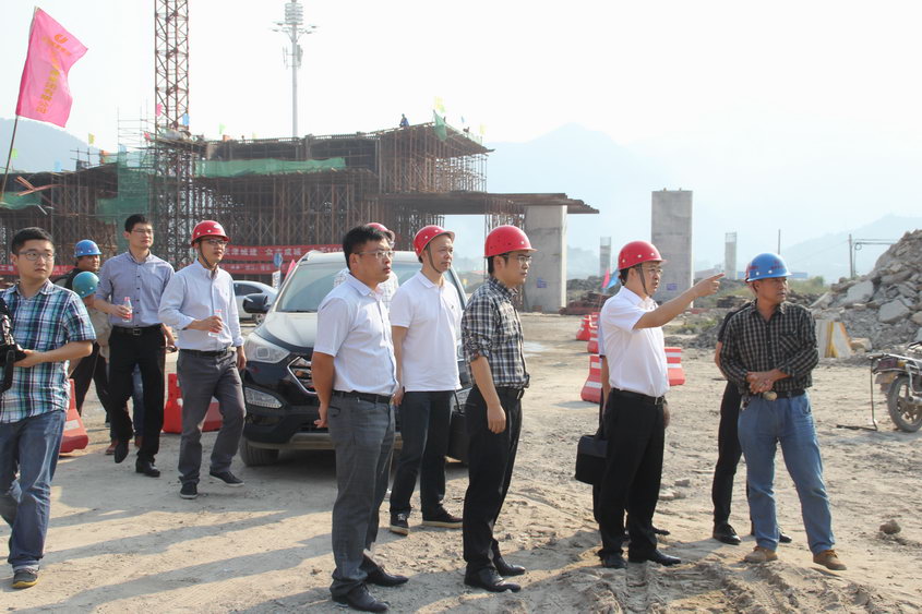 王振勇一行查看了瞿溪主线预制梁安装和挂篮施工部位,听取了项目经理温德新的汇报,对项目安全、质量和施工进度情况作了详细的了解。