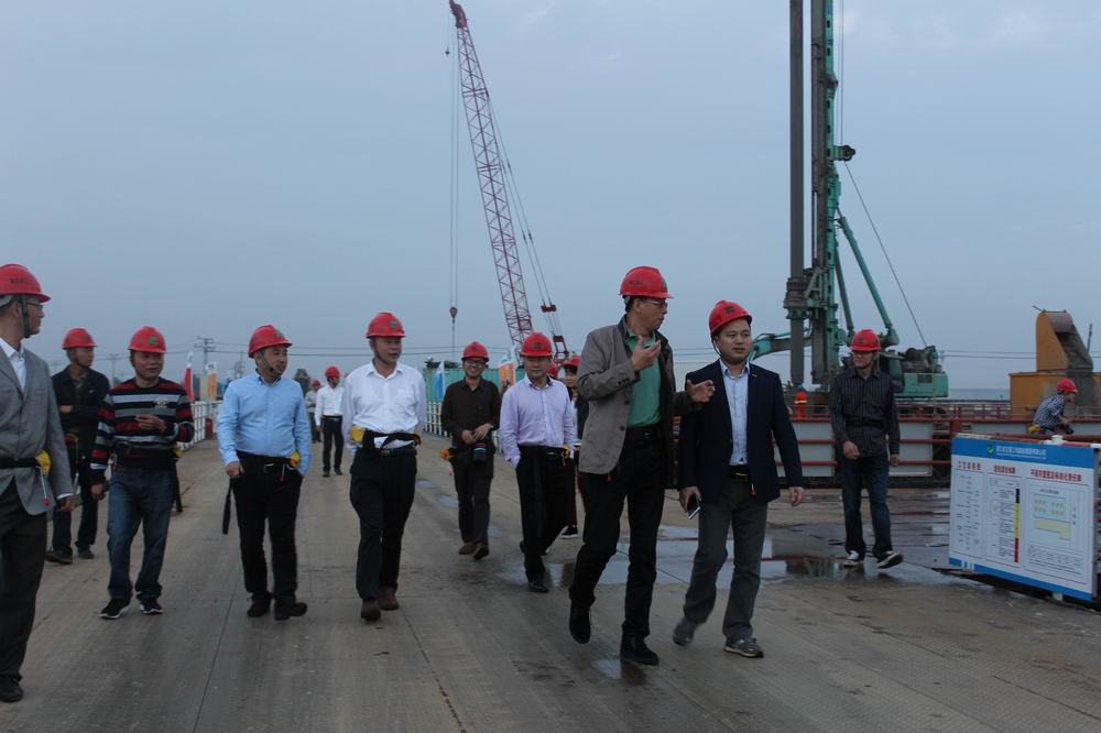 随后,詹总一行前往瓯江口跨海特大桥现场进行了参观,并与现场技术人员进行了交流。詹总对温瑞处热情接待表示感谢,希望今后双方能够继续加强合作交流,共同学习提高,圆满完成工程建设任务。