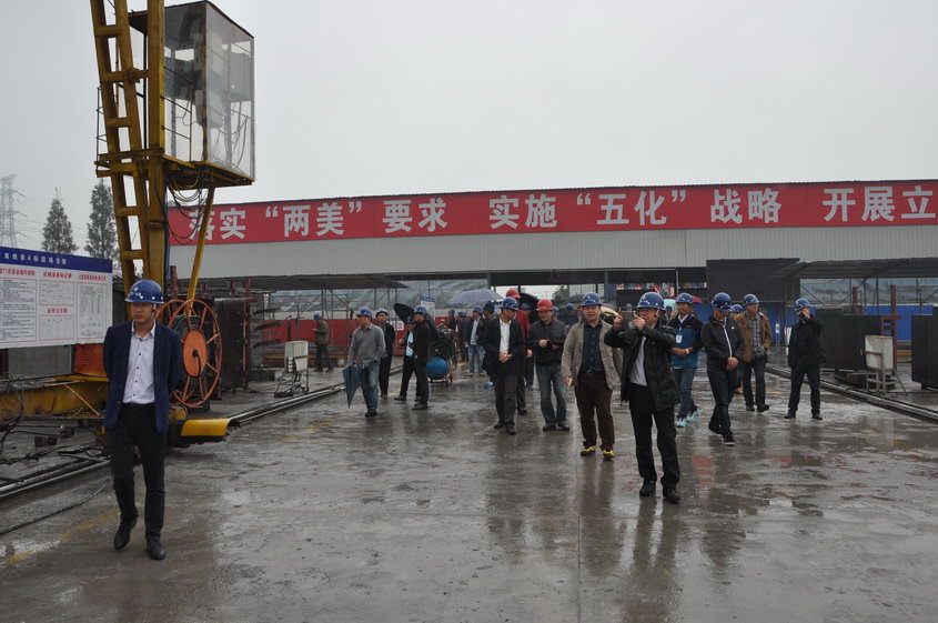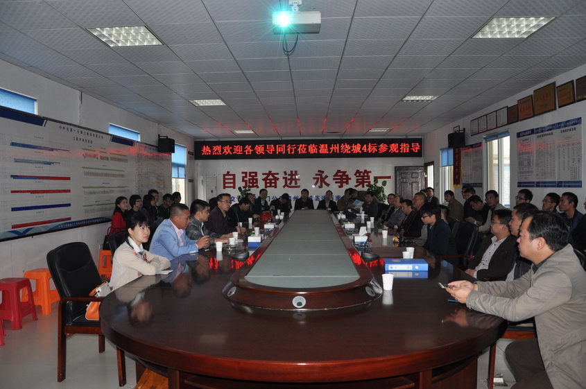 一行人首先在4标项目部会议室召开了座谈会。会上,陈照亮总经理就绕西南工程的整体建设情况进行了阐述,并对项目的工程特点、项目管理、具体进展等情况与在场的同行进行了深入交流。4标总工闫军针对项目管理“质量安全标准化”进行了汇报,对施工工艺、智能数控设备的使用、多样化安全培训、科技化安全管理、系统化安全隐患管理等创新部分进行详细介绍。