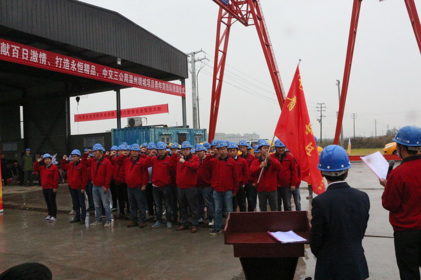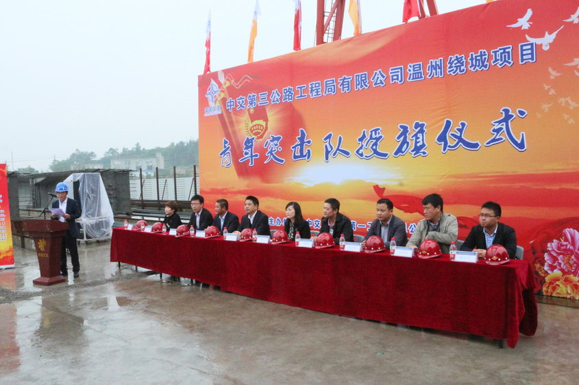 王书涛书记宣读了《成立中交三公局温州绕城项目青年突击队的决定》,他表示要想打好“大干100天,确保年计划全面完成暨百日安全无事故”这场仗,全面完成施工生产任务,项目广大青年员工要挑起重担,以标杆引航作用凝聚每一个项目员工的力量。