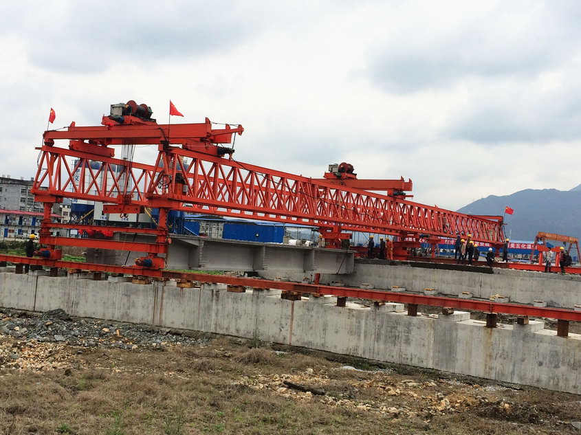 桐岭互通A匝道2号桥:上部节构采用5X25+5X25预应力砼先简支后连续T梁;下部结构采用肋式桥台,柱式桥墩,基础采用钻(挖)孔灌注桩基础。因部分施工段梁板安装在500KV高压线下,根据现场施工实际情况及电力设施安全距离,为确保高压线下施工安全,绕西南及项目部多次方案研究,不断优化工艺工序,最终确定,对架桥机高度控制在