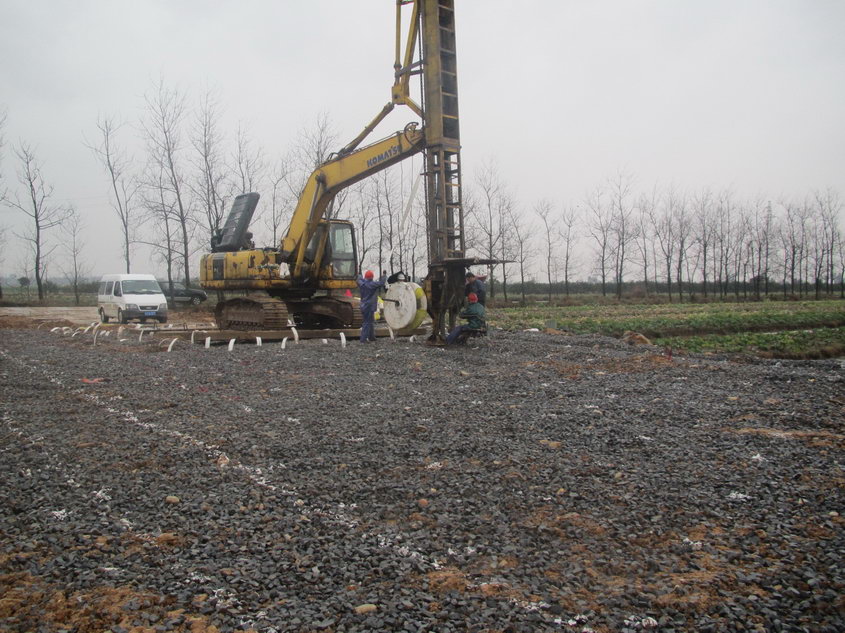 1月22日,甬台温高速公路复线温州灵昆至阁巷段工程土建7标项目部不畏“寒潮”,启动路基工程软基处理塑料排水板试验段施工。