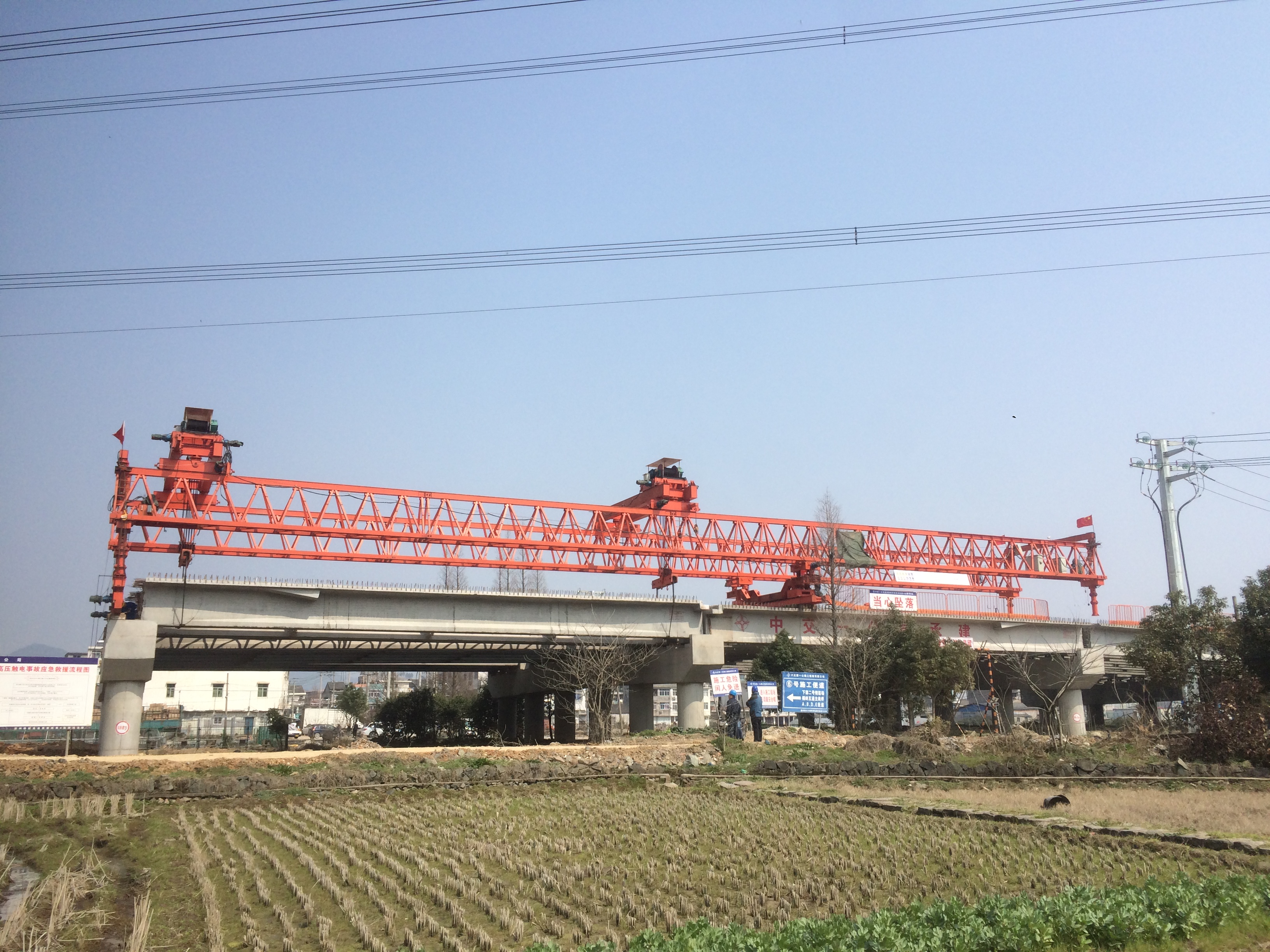 线下架梁期间,4标项目领导精心安排、强化管理,并组织了安全技术交底,同时在项目安质群实时通报现场施工情况,以便及时发现问题、解决问题。据悉,设备(架桥机或者吊车)顶端最外缘致高压线下缘的安全距离是
