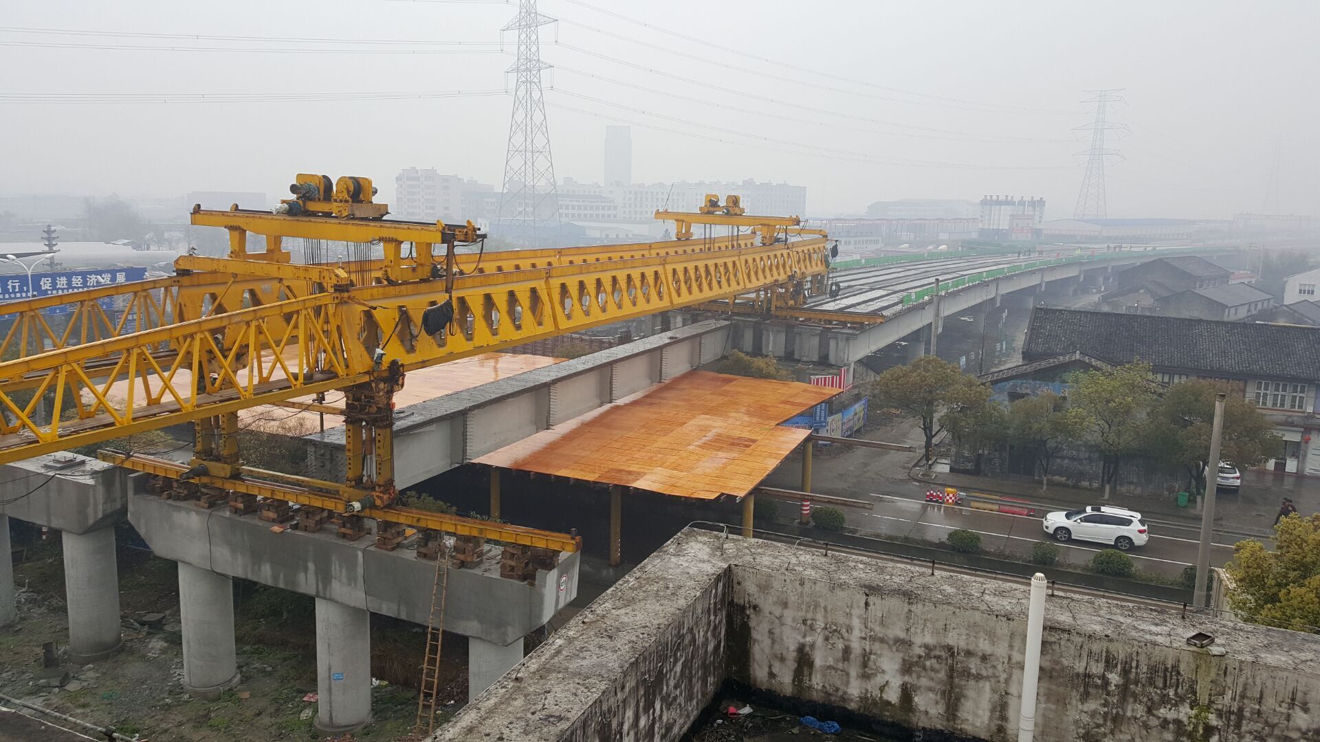 由于104国道平阳—瑞安交界路段车流量非常大,交通情况复杂,11标段项目部高度重视、积极应对,提前编制了施工安全预案,并先后通过了由市公路交通主管部门牵头的安全评价报告审查和相关专家组主持的安全专项方案评审。为保证架梁安全,项目部与业主、指挥部、交警、路政、安保公司等部门多方协调沟通,并对104国道两端的标志标牌进行设置,增设爆闪灯、限速牌、道路施工引导牌等,确保过往车辆、行人有序通行;而后在104国道两端组织交警、路政、保安公司和项目部相关人员,对104国道进行临时卡点、借道管理,确保过往车辆行人安全。经过一天紧张、有序、规范的架梁工作,19日上午整个跨104国道右幅架梁工作全面完成。由于前期现场准备工作充足、落实严格,整个架梁临时卡点过程中104国道未出现过往车辆大量滞留情况,未发生一起交通安全事故。