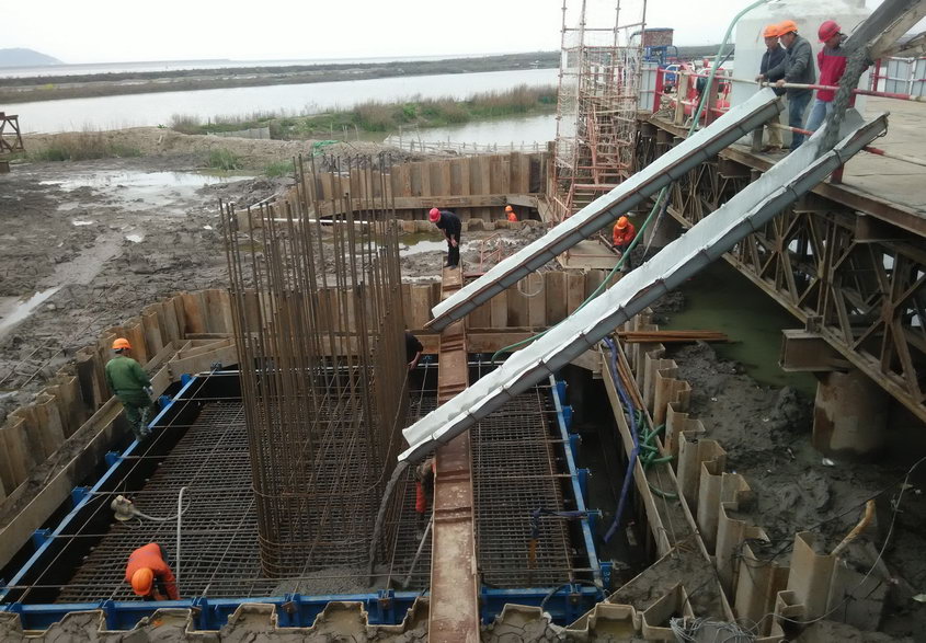 鳌江特大桥南引桥首个承台成功浇筑