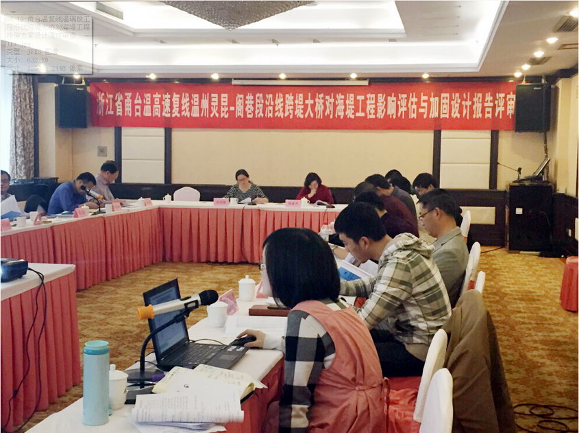 会上, 与会代表和专家认真听取了浙江广川工程咨询公司(编制单位)关于本项目跨堤大桥对灵昆浅滩南堤、瓯飞围垦一期北堤、滨海围垦主堤、永兴北围堤、永强标准堤、飞云江北堤、飞云江南堤等影响分析及补偿方案设计详细介绍。在听取汇报后,专家组仔细审阅相关资料,经深入分析和探讨,并形成一致意见,认为跨堤大桥对海堤工程影响分析数据详实,补偿方案设计合理,可作为海堤工程加固设计方案来实施。