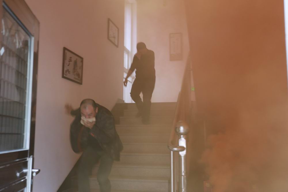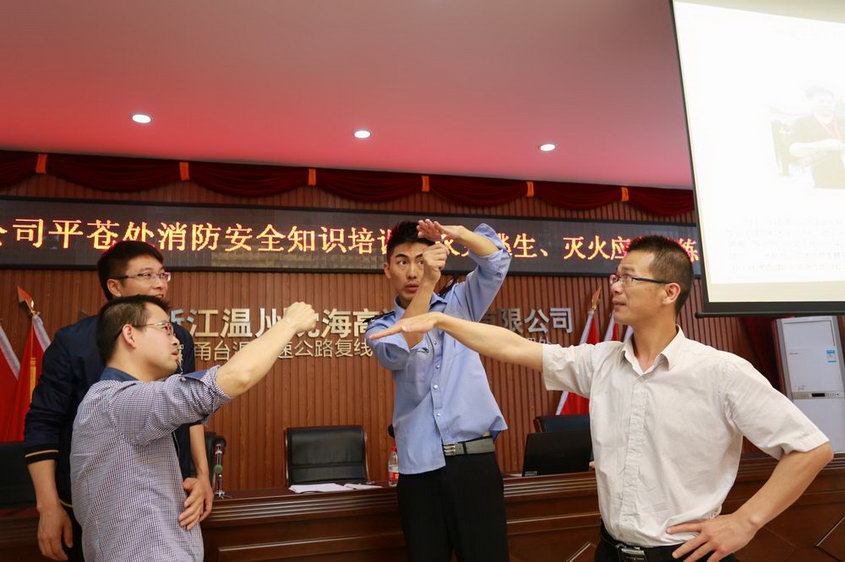 培训后,为加深对消防灭火知识的理解,进一步巩固实践效果,在俞教官的现场指导下,平苍处全体职工展开了一场火灾逃生、灭火应急臭地演练活动。按照演练预案,俞教官事先在指定地点点燃烟雾弹,发现火情后,按照指定的路线迅速、有序进行转移疏散,在疏散过程中大家手持湿毛巾捂住口鼻,弯腰低头扶着墙壁有序撤离,以应对一旦发生火灾时面对的浓烟环境。演练过程中,对火灾处置、人员疏散、医疗救护、指挥调度、信息发布等方面进行了一次全方面的检验和演练。随后,俞教官还现场演示了灭火器使用的操作程序,并让大家亲身体会灭火器灭火的真实感受和正确掌握灭火器的操作方法。
