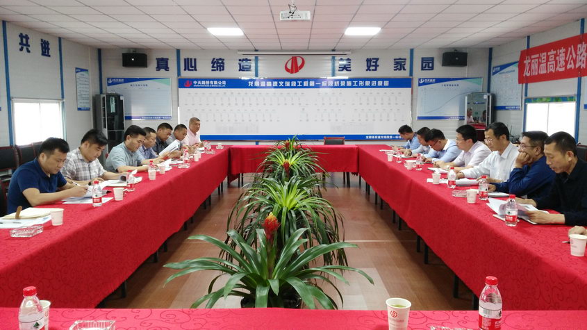 5月17日,瑞文公司总经理宋海良带队检查项目文成段土建1、2标建设情况,并在1标项目部大会议室组织召开了四方工作对接会议。参加此次检查和会议的有龙丽温高速公路文成段工程建设指挥部常务副指挥叶飞,副指挥刘万通、周上旺,瑞文公司副总经理覃毅宝、工程管理部相关人员,监理办及项目部负责人。