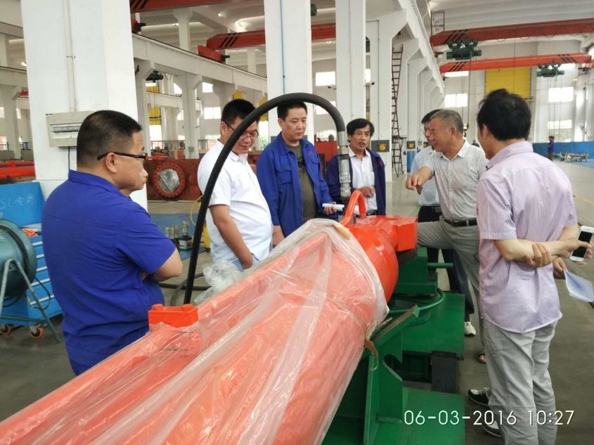 验收小组首先到常州液压成套设备厂对QHSY1000/500-4.5液压式启闭机进行出厂验收,查看了启闭机制造过程资料,并按规范要求对液压缸进行空载、耐压、内泄露、外泄露、运行速度等试验,试验结果符合规范和设计要求,经会议讨论通过QHSY1000/500-4.5液压式启闭机的出厂验收。
