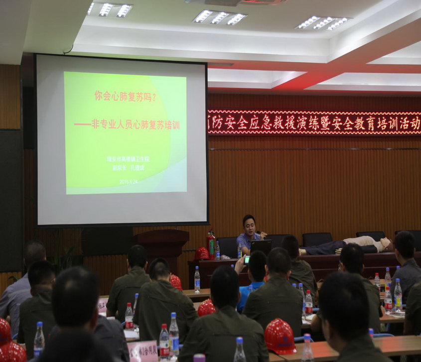 本次活动通过安全知识理论培训、观看安全警示片以及安全知识竞赛使大家真正意识到安全工作的重要性。活动邀请了瑞安市高楼镇卫生院院长孔理成和文成县消防队班长周鹏演示讲解急救知识、火灾逃生技能、灭火器及各类消防器材的使用方法。在消防演练中全程跟踪,对参加演练人员通过解救人员,对伤员进行心肺复苏以及灭火规范等的表现进行点评。