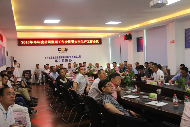 为认真回顾总结上半年工作经验,研究部署下一阶段重点工作任务,同时进一步加强安全生产工作,7月21日,监理公司在甬台温复线瑞安至苍南监理办大会议室召开2015年度监理工作暨安全生产工会议,监理公司领导班子,各监理办总监、副总监、信达公司班子、质监部及相关部门共计60余人参加了此次会议。