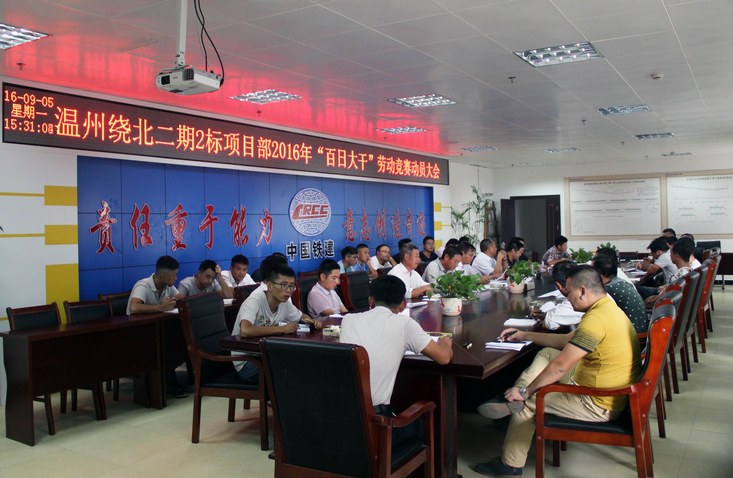 会上,项目党工委书记传达了公司工会关于开展“六比一创”劳动竞赛活动的通知,并由计划部部长对此次百日大干的施工计划进行了详细分解说明;之后,项目总工对“百日大干”的施工生产任务所涉及的施工组织、人员配备、原料供应、安全质量等工作进行了周密部署;最后,项目负责人做总结发言,并对“百日大干”提出三点要求:一是要求全体员工认清形势,明确目标,各部室紧密围绕“百日大干”活动要求,各尽其职,相互配合,迅速掀起施工大干高潮;二是要求在提高创新意识,确保出成绩,显成效的同时绝对不放松施工现场的安全质量工作,将标准化建设工作落到实处;三是要求加强领导管理,精管严控,确保每项节点施工任务保质保量的完成。