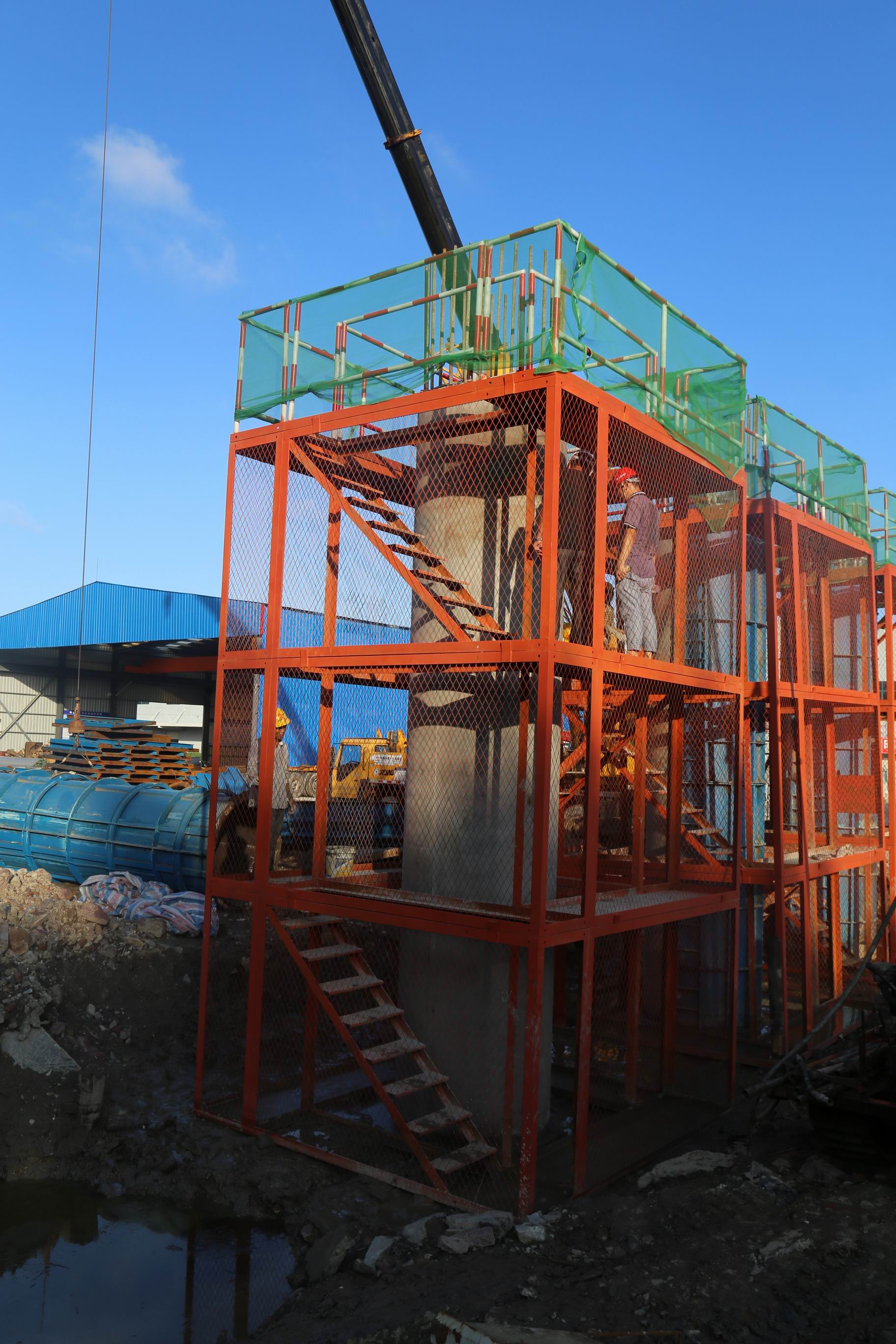 为按期圆满完成首个墩柱的浇筑任务,项目部提前谋划,统筹安排,合理有序推进各项工作。一是首次采用了整体式楼梯,既方便施工操作,又大大提高了墩柱浇筑安全质量的可控性;二是对现场施工作业人员加强安全、技术培训,规范现场操作流程;三是狠抓施工细节,从钢筋绑扎到模板安装,从混凝土配合比检验到现场浇筑工艺,确保每一个环节都精准到位,有效保障了墩柱施工质量。