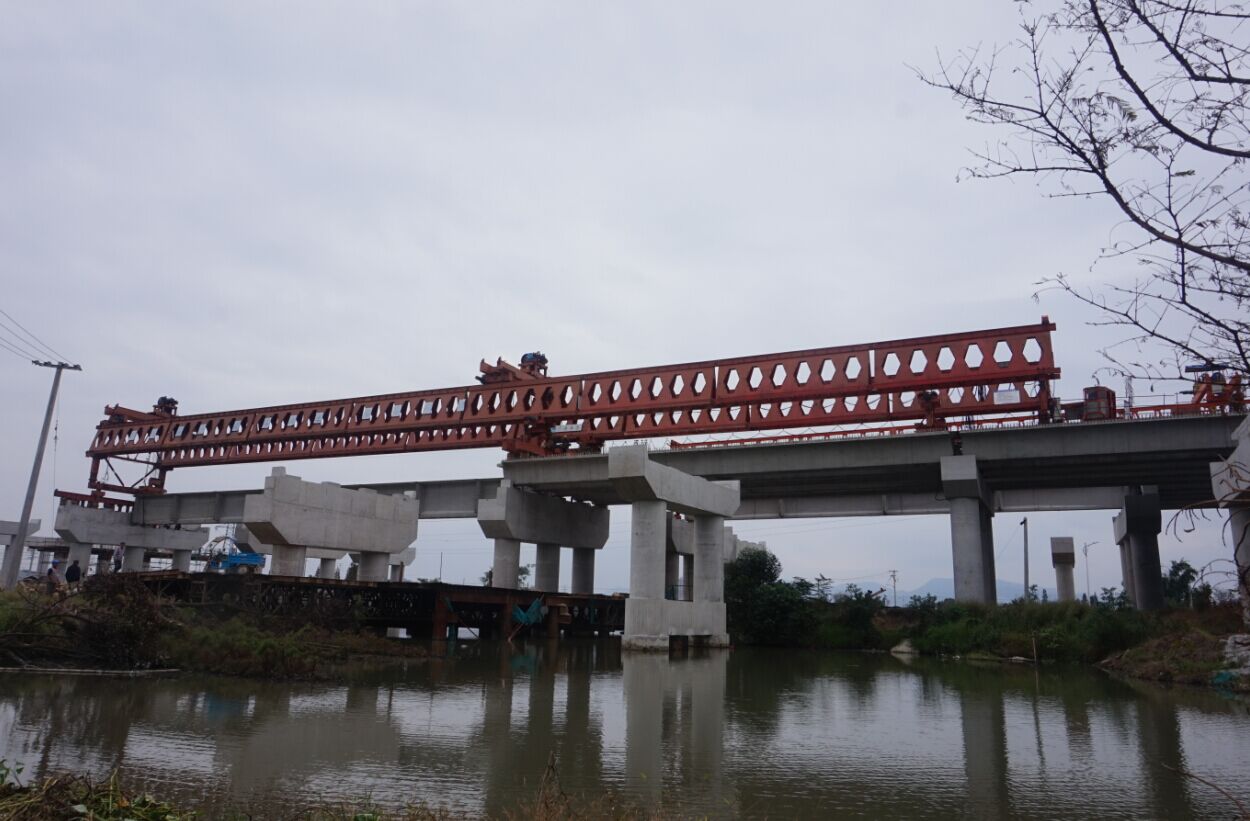这片50米T梁是跨瑞平航道的上部构造,是绕西南工程最长跨度T梁,也是第10标段的控制性重难点工程。因其跨度长,预制技术难度大,对运输、架设安全要求特别高。10标本着安全第一、质量为本的宗旨,提前做好施工人员及现场管理人员的安全质量技术交底。梁片运输及架设时,安全、质量技术人员全程跟踪,及时防控和消除安全隐患。项目部通过精心组织、狠抓工序衔接,克服了梁片运距远、安全风险高、施工难度大的重重困难,确保了50米T梁的顺利架设,这也为项目积累了长跨度T梁架设经验,同时激发了全体参加者完成年度任务的信心和决心。