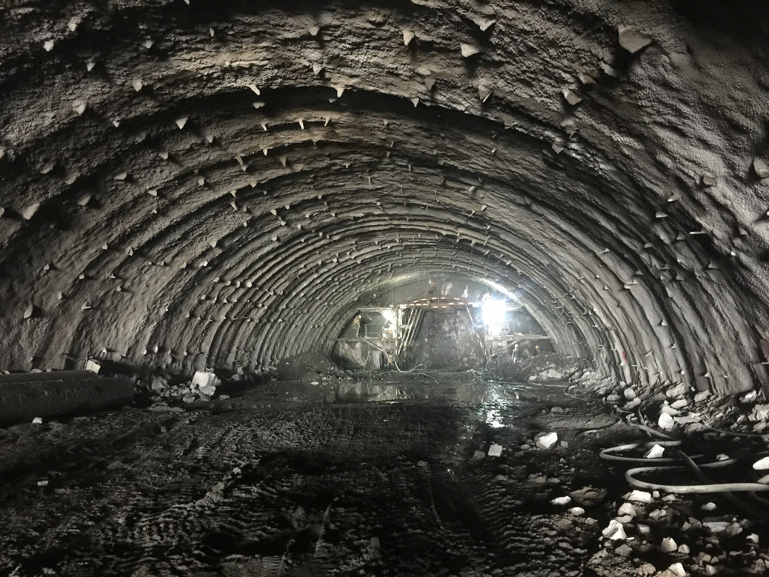 12月6日,在绕北二期南山隧道施工现场,承担建设的中交路建北方工程有限公司的工程技术人员正在加紧施工。