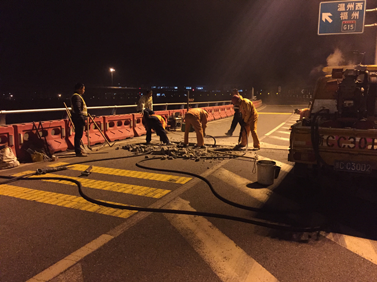 仰义枢纽G匝道位于温州绕城高速西北部,是衔接温州绕城高速和金丽温高速的交通要道。2016年12月20日,仰义枢纽G匝道的桥梁伸缩缝出现了一定程度的损坏。据了解,桥梁伸缩缝可以起到缓冲位移的作用,防止桥梁路面结构在大型车辆通过时因温度变化而导致粱体位移过大,产生破坏变形。伸缩缝水泥破损不仅影响车辆行驶,更会影响到伸缩缝的使用寿命和使用效果,进而影响到桥梁使用寿命和安全性。
