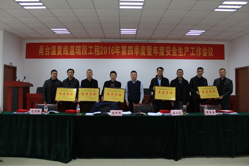 1月16日下午,沈海公司温瑞处组织召开了甬台温高速公路复线温州灵昆-阁巷段工程2016年第四季度暨年度安全生产会议。沈海公司总经理、温瑞处处长蔡邦国,沈海公司总工、温瑞处副处长姜玉龙,温瑞处相关人员,各施工及监理单位共100余人参加了会议。
