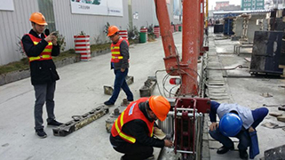 图为工人安装现场 图为特检院人员检查指导