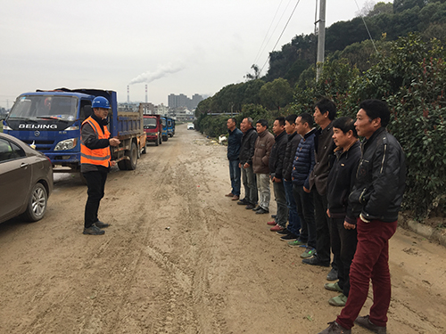 1标段整体占线较长,工程出渣量较大、所需运输车辆较多且地方存在陡坡路滑现象,因此交通安全显得尤为重要。这次教育内容主要围绕渣土车司机安全操作规程、施工现场司机需要注意事项等问题进行了详细讲解,安全副经理莫美结合自己多年在安全生产工作中总结的经验及教训,对大家阐述了自己对交通安全方面的观点、认识和看法,并且就此次会议内容对现场施工作业人员提出了要求。