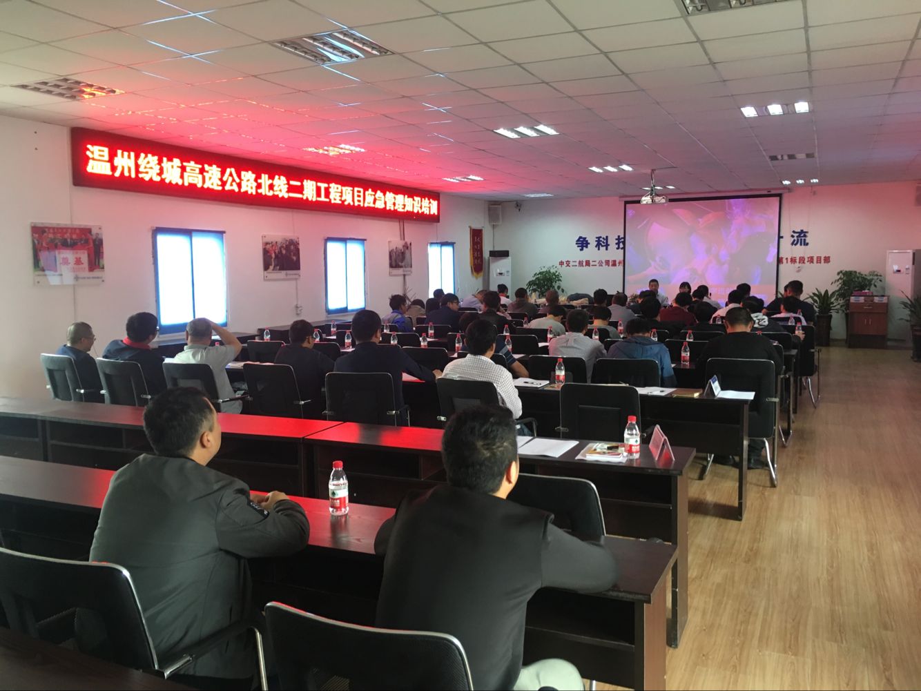 绕北处结合“安康杯”竞赛活动及“5·12防震减灾”宣传周活动,组织此次安全应急急救知识培训,旨在最大程度减少突发事件发生后的人员伤亡,降低事故造成的损失,促进绕北二期工程又好又快又安全地建设。