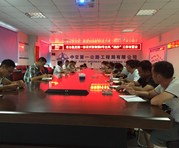 今年第九号台风“纳莎”正逐步逼近,第十号台风“海棠”紧随其后,为提前做好防抗“双台风”的各项准备工作,高投公司项目一标结合以往防台防汛工作经验,于7月29日下午16时组织召开防台防汛工作布置会议,全面落实防台防汛工作责任。
