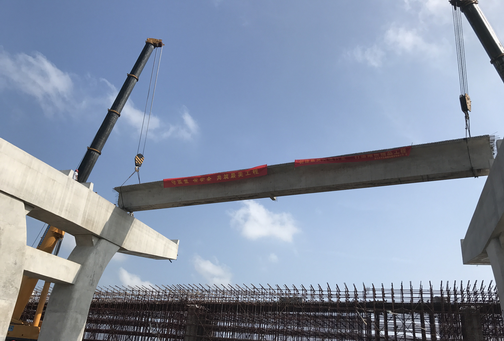 七里港互通主线桥首片预制箱梁成功的架设,标志着土建3标上部结构施工进入预制箱梁与现浇箱梁“双龙齐飞”的阶段,为加快推进绕北二期项目建设奠定了坚实的基础。
