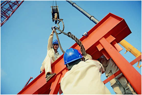 施工人员自早上6:00开始龙门吊安装工作。此次龙门吊安装采用了两台超大型吊车,由于主梁重量极重,需要两台吊车同时悬吊,两台吊车同时对一根主梁精准对位、极高的吊装精度以及作业人员需同时在高达31米的高空进行焊接作业,都给施工带来了重重困难。为了保证安装的精度和安全性,所有工作人员都非常谨慎,安全监察全天候在现场把控,确保安装工序按照预案逐步进行,并且记录安装过程中的每一个细节。