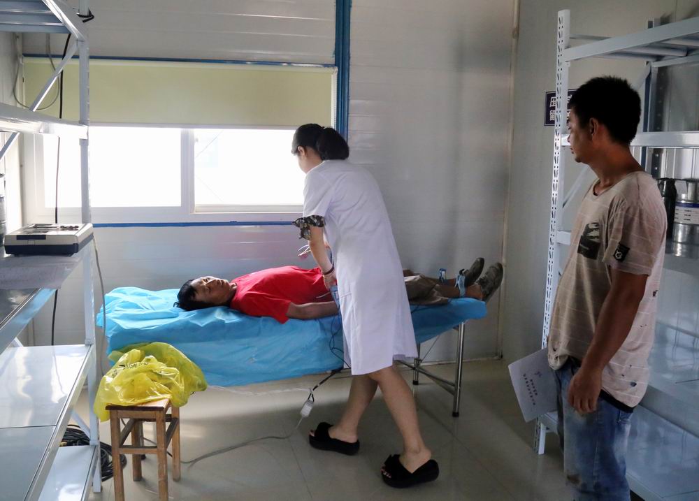项目正值施工大干期间,为确保每位高空作业人员身体健康,不影响施工进度,项目部紧密部署,精心组织,把医院医护人员请到工地,把体检设备搬进工地会议室,建立了临时体检中心,便于大家就近开展检查体检。