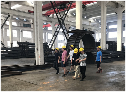 8月18日上午,由温州瓯江口大桥有限公司代表、浙江省交通规划设计研究院代表、瓯江北口大桥工程第二监理办代表、土建三标项目部组成代表等组成的考察小组对南锚混凝土沉井钢模加工制作情况进行检查。