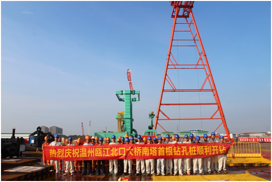 8月21日上午7时08分,温州瓯江北口大桥项目南塔首根钻孔桩施工启动仪式顺利举行,南塔桩基12#桩开始首桩试钻,标志着南塔下部结构施工进入崭新阶段。