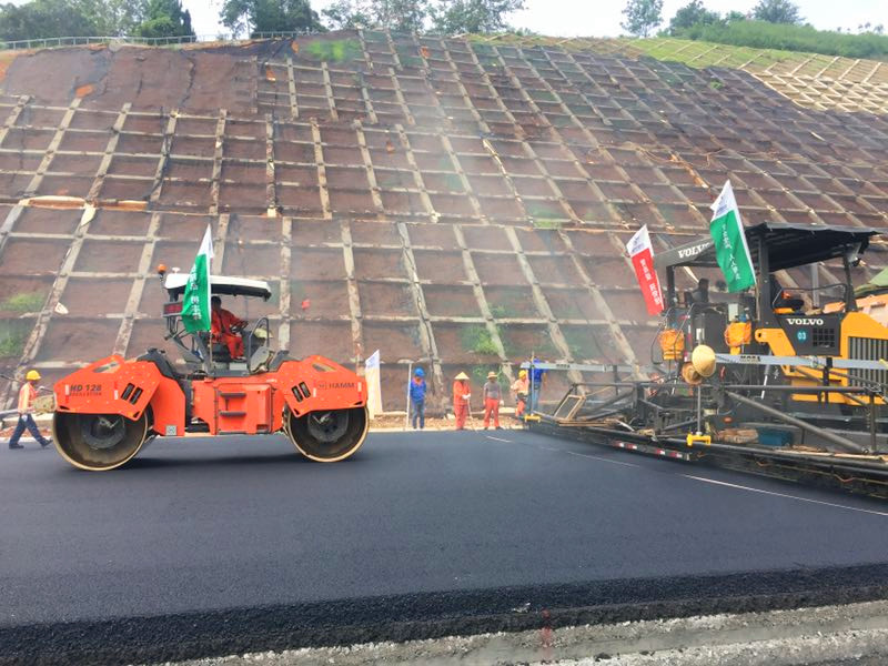 绕西南工程第13标段完成沥青上面层试验段铺筑