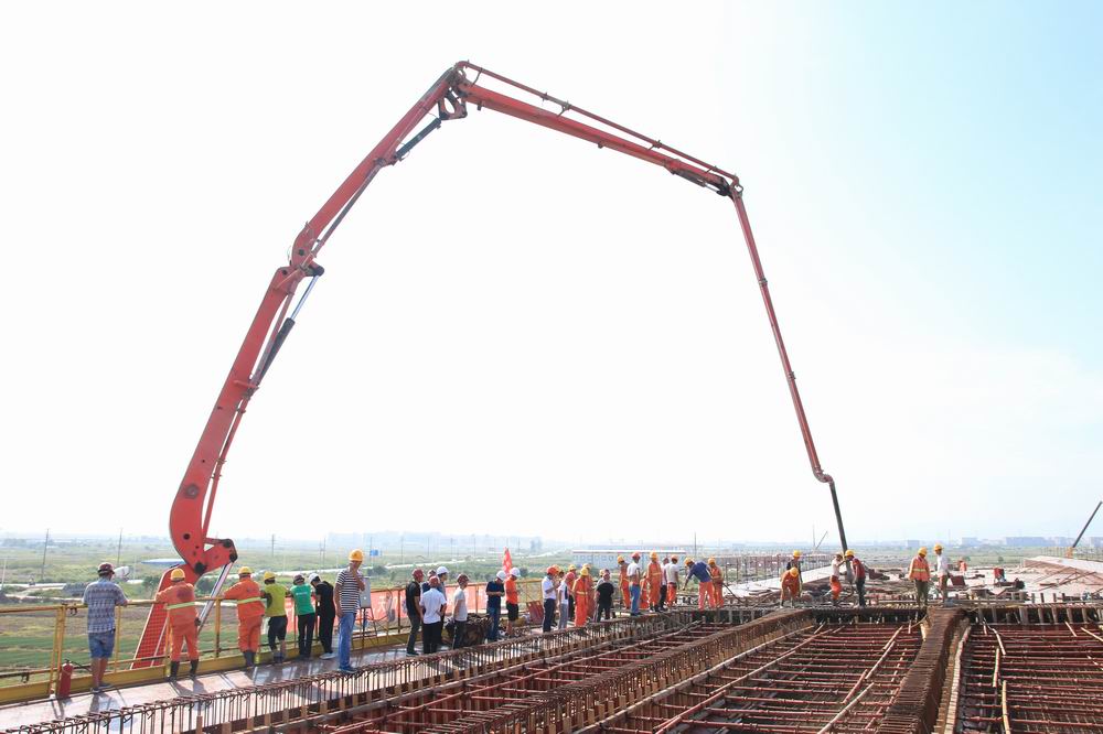 10月2日,全线首联现浇箱梁浇筑正式拉开序幕。本次箱梁现浇作业位于龙港高架4号桥右幅第二联,梁高1.8米,宽16.25--21.15米,长113.2米,总方量1923方,共分为两次浇筑,第一次浇筑(底腹板层)方量达到约1110方,施工时间整整24小时。