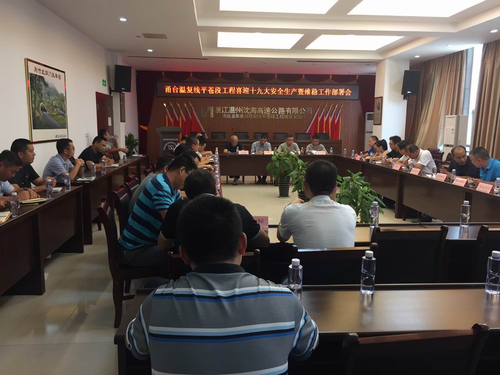 10月11日,沈海公司平苍处召开甬台温复线瑞安至苍南段工程喜迎十九大安全生产暨维稳工作部署会,深入传达贯彻上级关于做好当前安全生产和维稳工作的相关会议精神,分析研判当前安全生产和维稳形势,研究部署当前和今后一个时期安全稳定工作。来自平苍处、各监理及施工单位相关负责人参加会议。